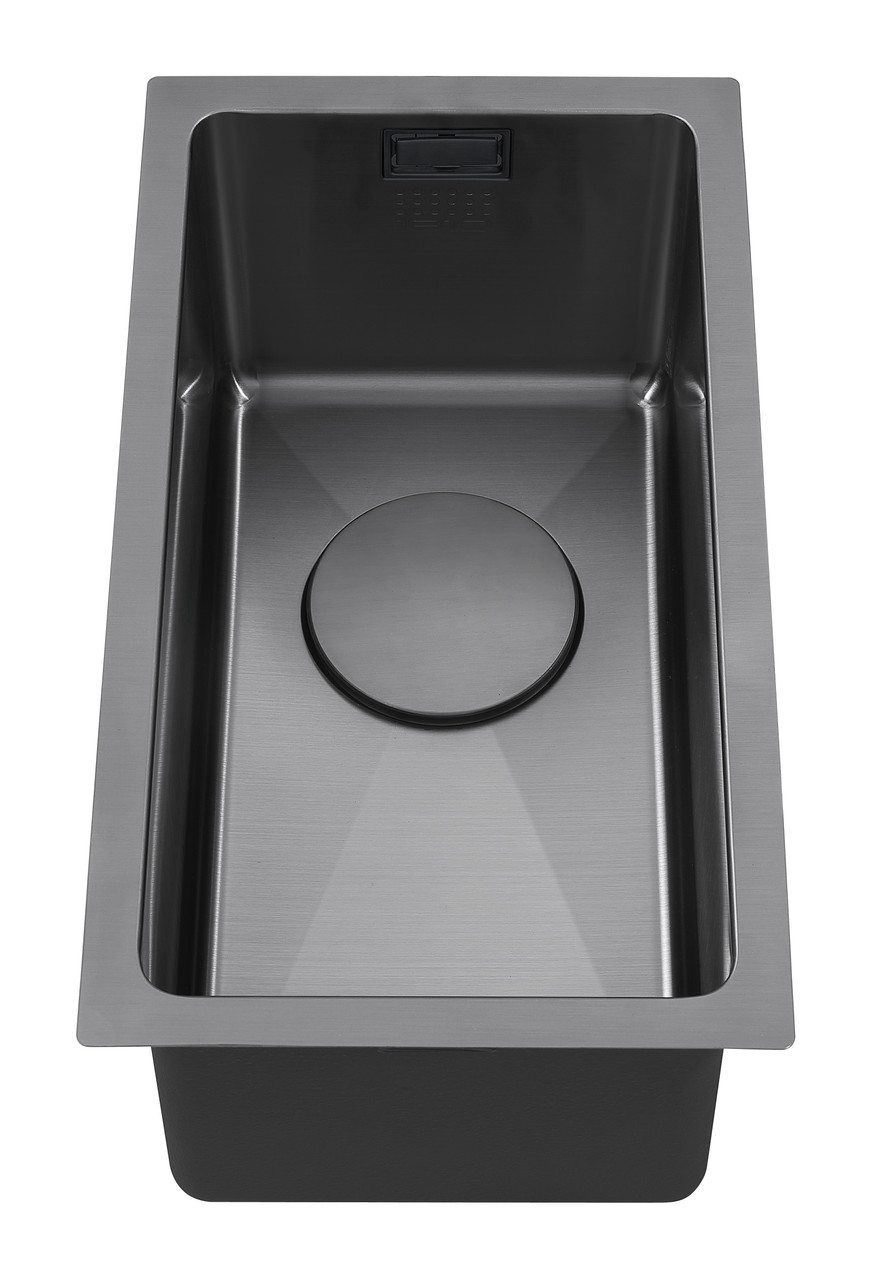 Enhance your kitchen with a modern, precision-built 1810 ZENUNO15 200U Undermount/Inset Single Bowl Sink - Gunmetal. This beautifully handmade 15mm radius bowl combines clean lines with lasting durability, offering a sleek and functional centrepiece for any kitchen. Designed for flexibility, it can be undermounted or installed flush/inset, with all mounting clips included for a flawless fit. The contemporary gunmetal finish enhances the sink’s elegant copper tone while providing excellent resistance to everyday wear.