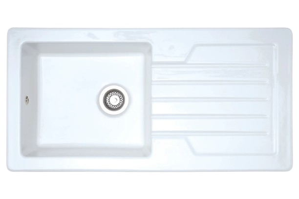 Austen & Co. Matera Single Bowl Inset Ceramic Kitchen Sink with Drainer is crafted from premium fine fireclay (FFC) and finished with a high-gloss, ultra-smooth surface that resists stains, heat and everyday wear while remaining easy to clean. The large single bowl provides ample space for washing pots, pans and daily kitchen tasks, while the reversible drainer allows flexible installation for left- or right-hand orientations.