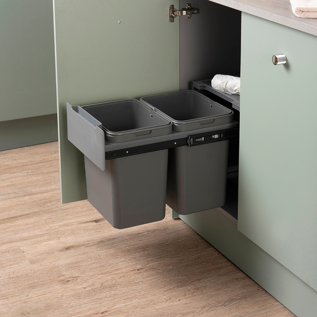 With a total capacity of 36 litres and a maximum load of 35kg, it is built for everyday household use. Smooth soft-close runners ensure quiet, controlled operation, while the fixed lid helps improve hygiene and reduce odours. The unit includes durable metal handles for easy removal and cleaning and is designed for quick and straightforward installation. For added flexibility, it can be converted to a décor door-mounted installation using the optional front bracket, allowing it to integrate seamlessly with your kitchen layout.