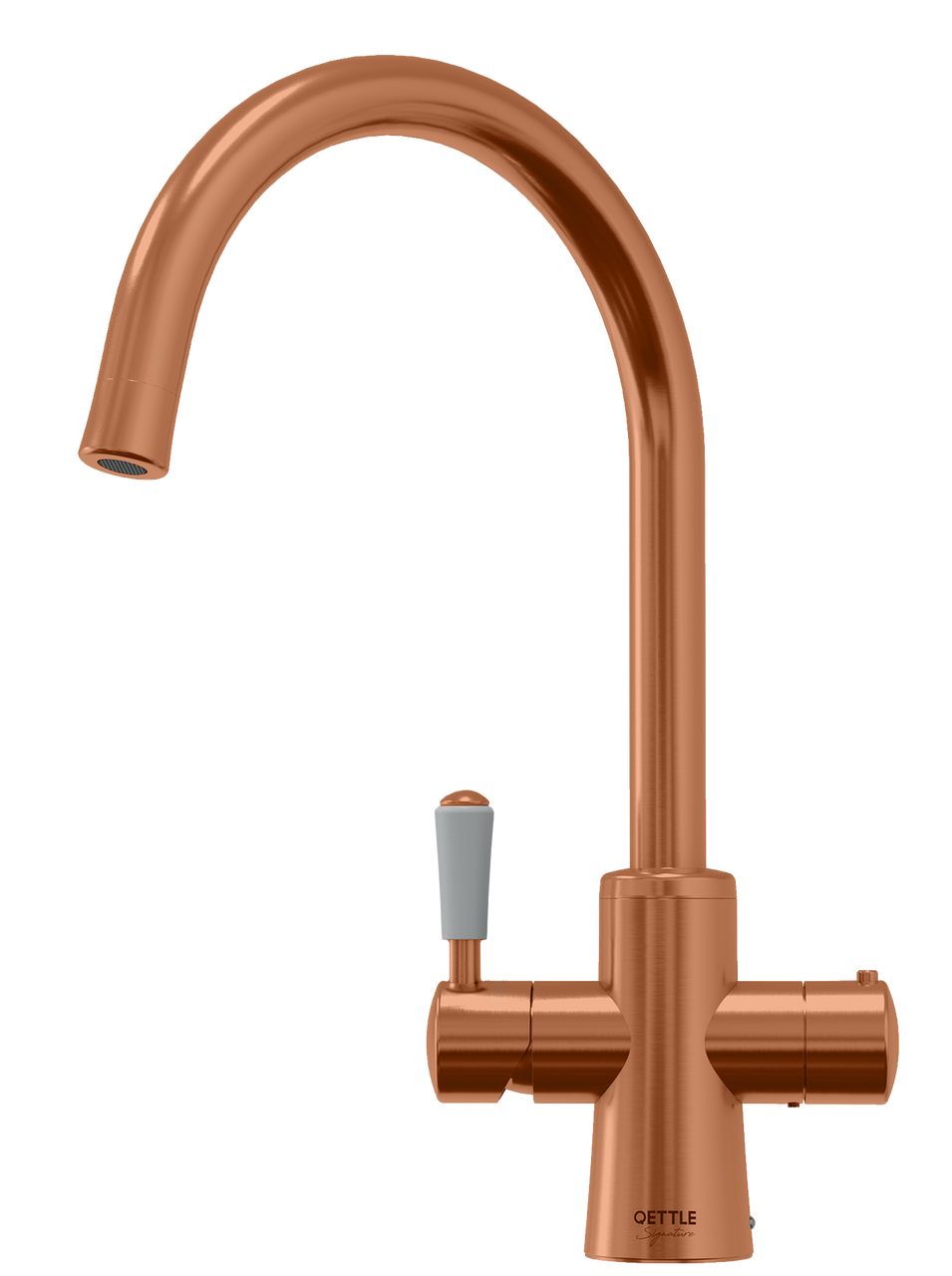 The QETTLE Signature Classic 4-in-1 Boiling Water Tap in Copper offers timeless charm paired with cutting-edge innovation. Combining instant boiling, filtered, and regular water in one fixture, this boiling water tap simplifies your kitchen routine while enhancing design appeal. The warm copper finish adds richness and depth, perfect for modern or traditional kitchens.